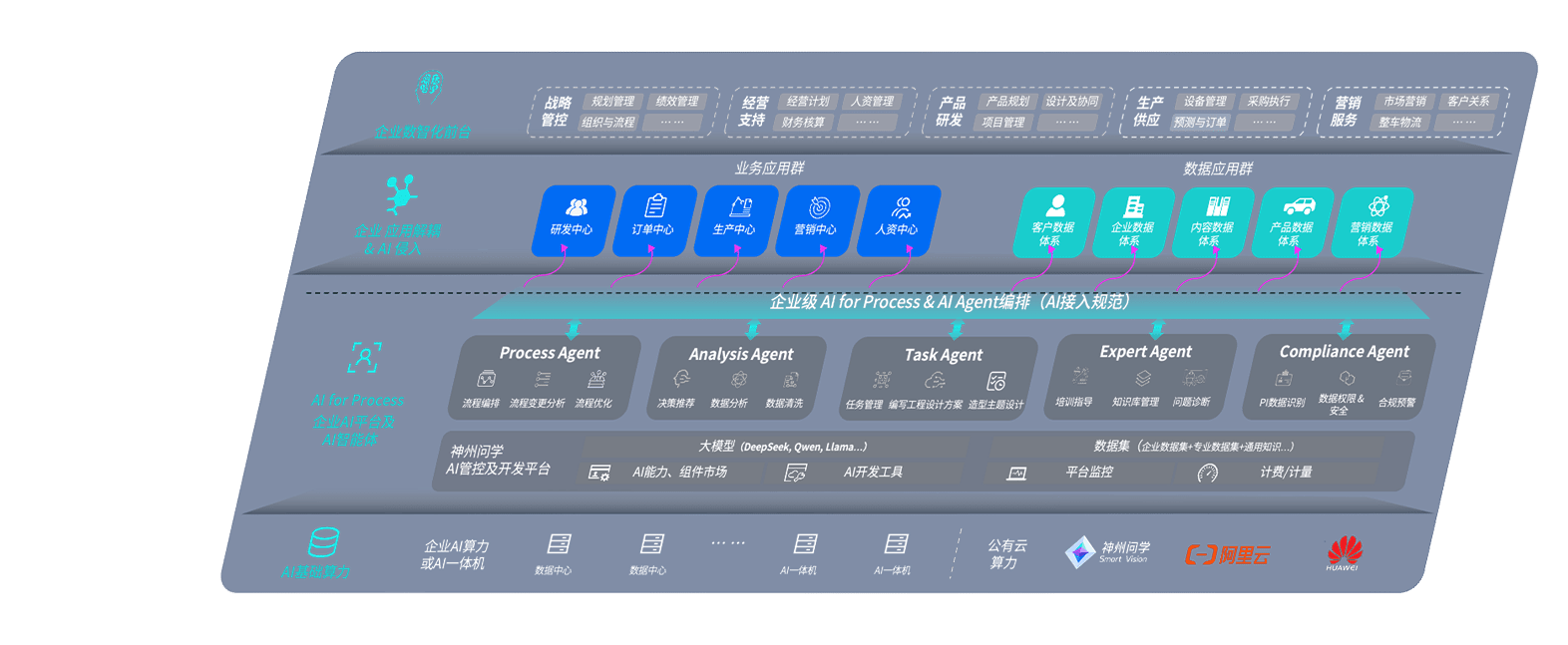 快盈VIII问学智车解决方案是一套基于AI技术的汽车行业智能化系统,,,,覆盖从底层算力到顶层AI应用的全栈方案。。。。方案由算力层、、、模型层和应用层组成:算力层,,,方案支持多种一体机配置,,,,具备云端灵活部署、、、多云适配以及动态优化计算资源的能力;模型层,,快盈VIII问学平台版提供了企业级AI应用一站式构建与管理平台,,,支持基于后训练强化技术的汽车企业专属模型的训练、、、、评测和运营;应用层,,快盈VIII问学DeepSeek版提供包括超级员工、、、、智能招采、、、、智能营销、、、智能客服、、、AI for BI等一系列解决方案,,,可助力汽车行业实现数字化转型,,让管理更智能、、响应更敏捷。。。